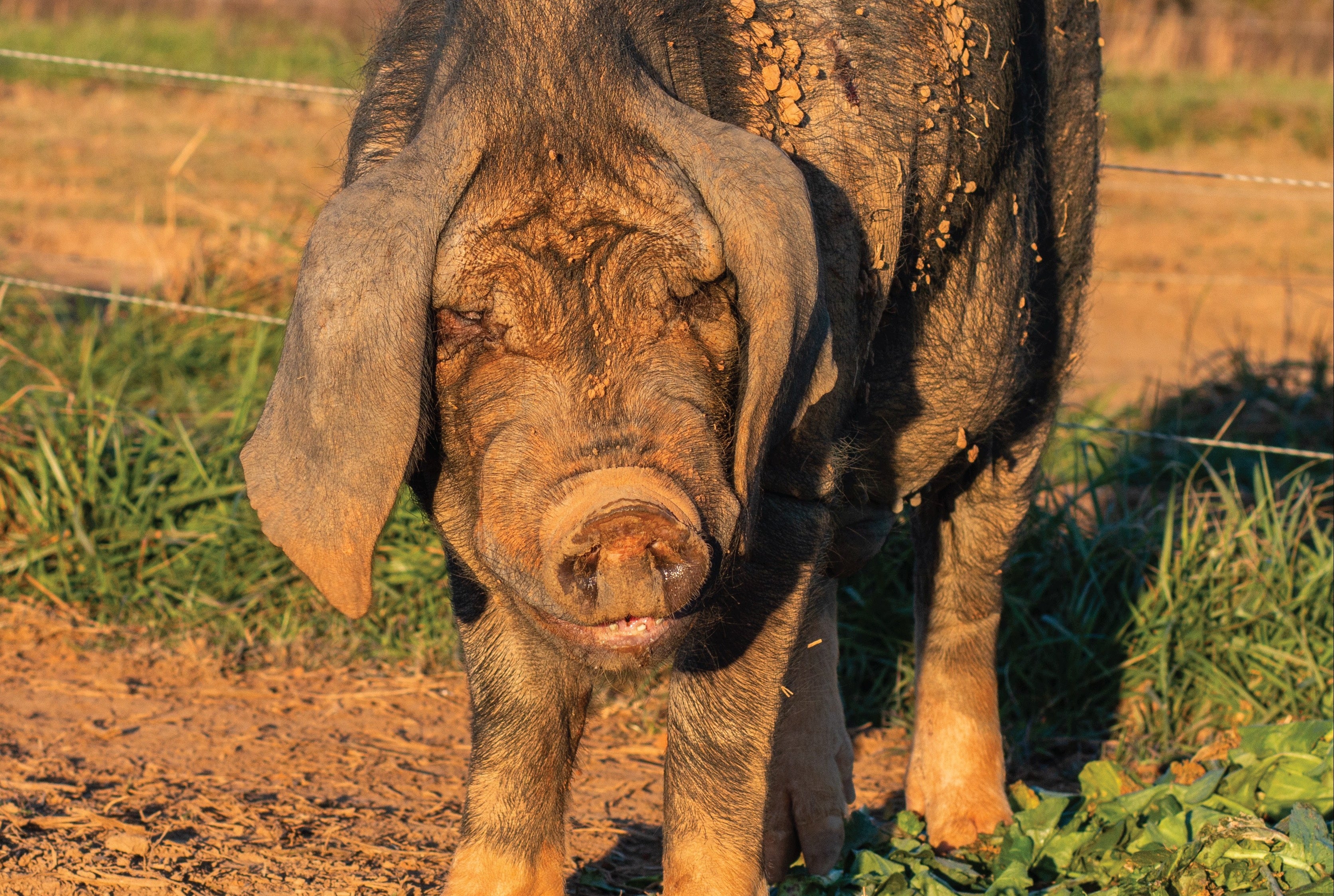 Meishan’s produce a red meat pork, with an incredibly tender, succulent tasting fat. We raise our pigs with lots of love, rotate them on pastures, our cover cropped fields, feed them TONS of our farms vegetable scraps and take the best care we can of them while they are here on the farm. We raise each pig between 13 and 15 months, which is the way it should be. Nice and slow. Living their lives fully outdoors free to roam where they want, means our hogs rarely secrete anything other than dopamine. Happy Pigs Taste better.